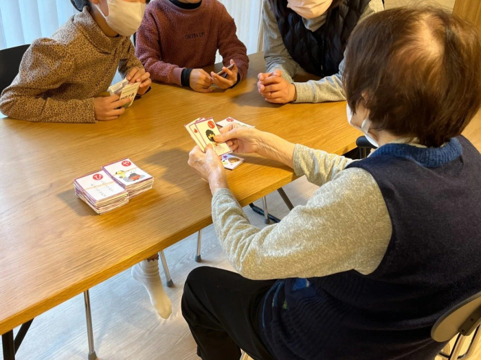 1月5日は、まあるの子供たちと一緒に、「福笑い」「書初め」「かるた」をしました。