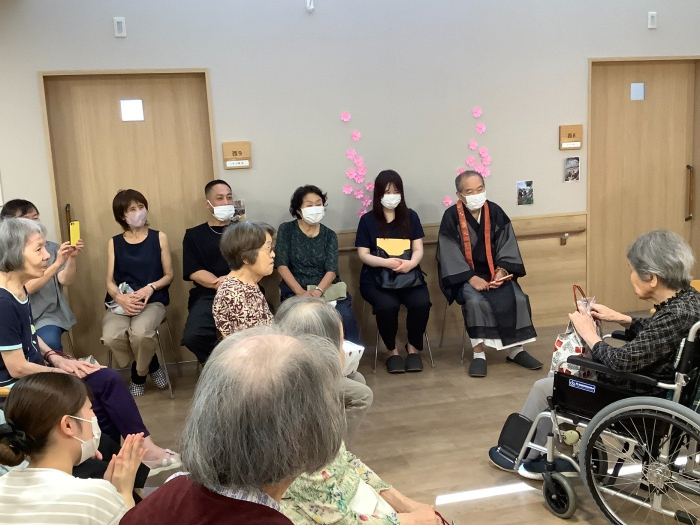 9月18日大安吉日…グループホームの敬老式を行いました。今年はご家族様、高松市や地域代表の方にもご参加いただきました。最初に、法人さぬきの藤目理事長より、お祝いの言葉をいただきました。