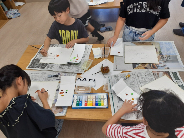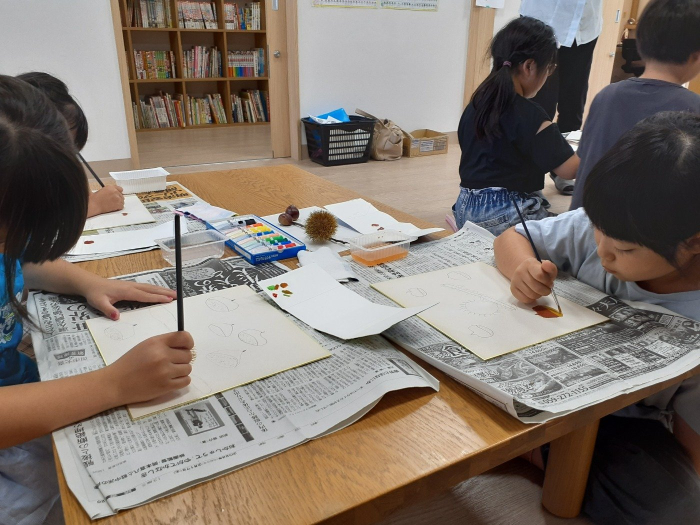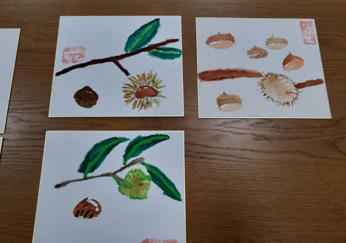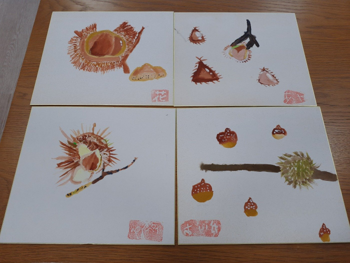 先月は、先生ご持参の、いがに入った栗を実際に見て、作品を作りました!