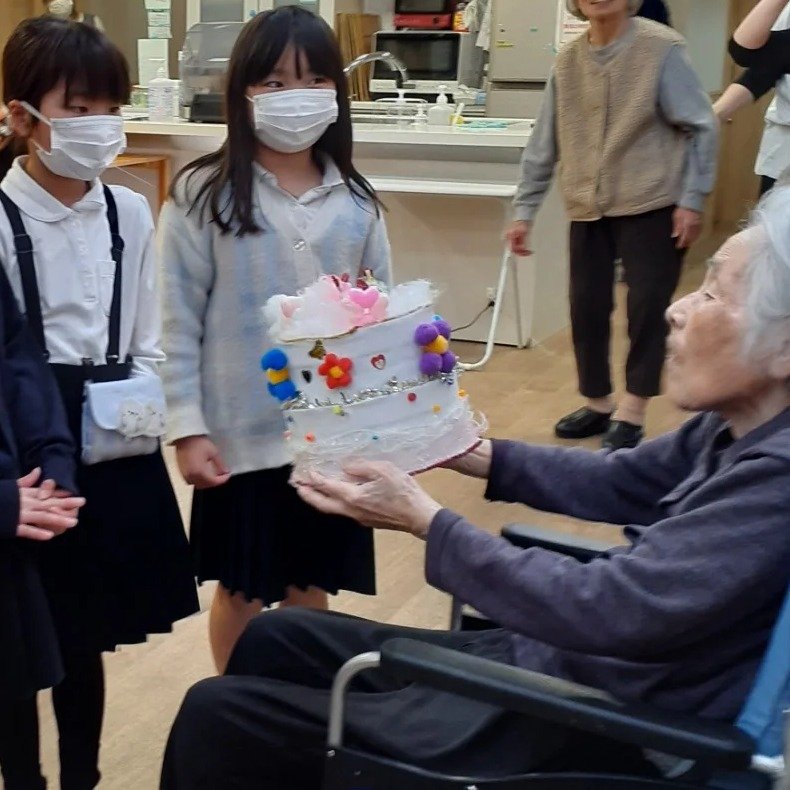 グループホームの方が、100歳のお誕生日を迎えられたということで、まあるの子どもたちもお祝い♪をしようと盛り上がり、ケーキを作ってプレゼントしました。