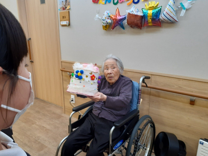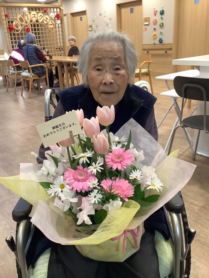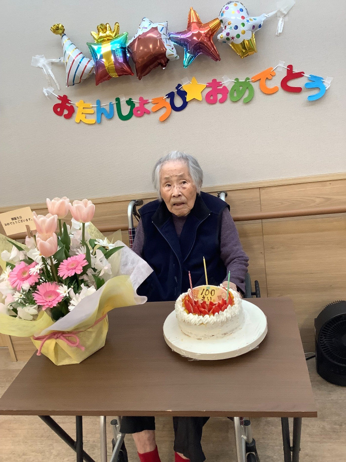 グループホームのご利用者の岡様が、3月元気に100歳を迎えられました。
