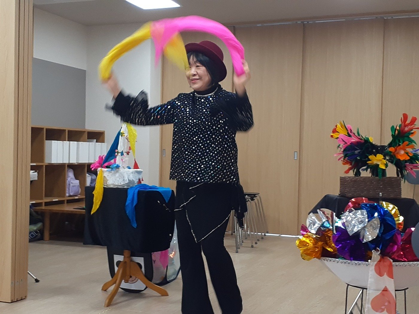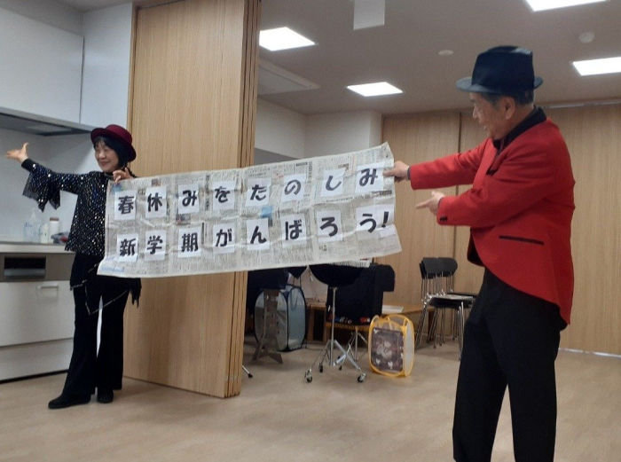 春休みには、マジックショーやフルート・トランペット演奏会、グループホームのお年寄りさんと一緒にミニ運動会をしました。