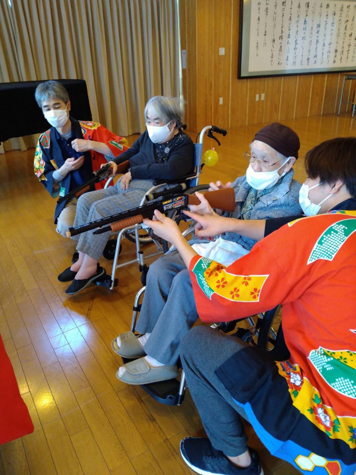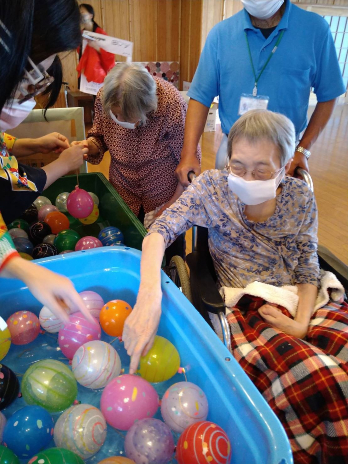 玉藻荘 2021.08.30 縁日 夏の行事、縁日を行いました。 輪投げ、金魚すくい、射的など、懐かしそうに楽しむことができました。 喫茶コーナーでアイスクリームやアイスフロートも食べて、笑顔がたくさん見られたひと時となりました。 笑顔のために頑張って準備をした職員のみなさんもご苦労様でした。 高松祭りも中止となり、花火は持ち越しとなりました。 来年こそは屋上できれいな花火を見ながら盛大に玉藻荘の夏祭りができますように。