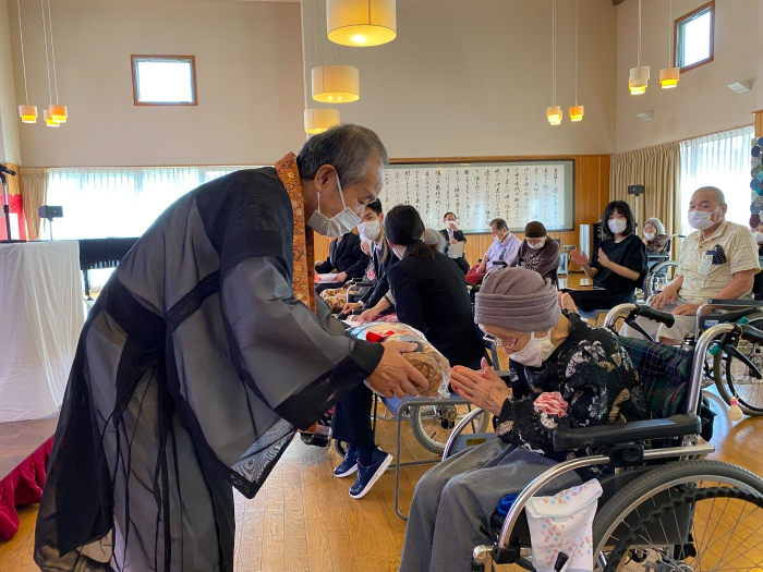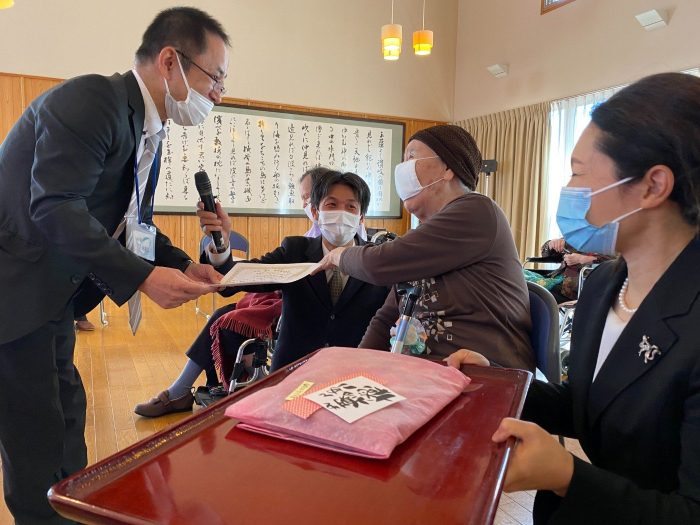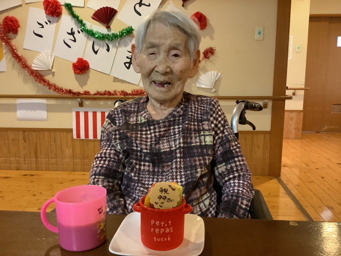 玉藻荘 2021.09.21 祝敬老 おめでとうございます。 敬老の日、入居者の皆様おめでとうございます。 敬老会では「家族思いで賞」「愛の力で頑張っているで賞」等、各ユニットから感謝状が贈られました。 玉藻荘の最高齢は106歳!! お昼には敬老御膳でお祝い。 米寿、白寿の入居者のおやつには、お祝いケーキが出ました。 いつまでもお元気で。