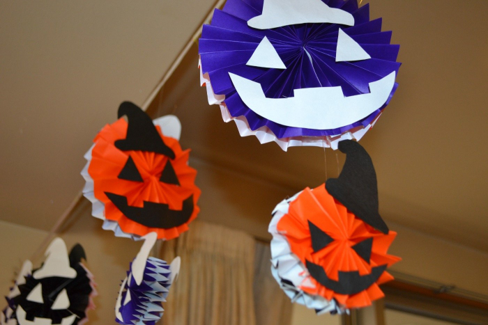 玉藻荘 2021.10.06 デイサービス ハッピーハロウィン 10月に入りデイサービスでは、ハロウィンに向けて、お部屋の飾りつけやハロウィンの作品作りを実施しております。 今年のハロウィンの壁画は、新聞紙を丸めたものを、お花紙で包みます!それを下書きしてある台紙に張り付けていきます。 みなさんで協力し、ハロウィンまでに完成予定です! 天井から吊っているガーランドも素敵に仕上がりました♡ もうすぐ完成予定なのでまたデイサービスに見に来てくださいね!