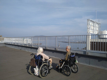 玉藻荘 2021.11.22 にちようび 玉藻荘でも、日曜日は、なんとなく時間がゆっくりと流れています。 お天気も良く、「来週からは、もう寒くなるよー」なんて言いながら 屋上でまったりと過ごしたり、近くの恵比寿神社のイチョウの木を見に行ったり。 青空の中に輝く黄色の葉。 本当にきれいで、見とれてしまいました(#^.^#) 少しヒヤッとした冷たい風に当たり、冬の始まりを感じながら また見に来ましょうねと約束しました。