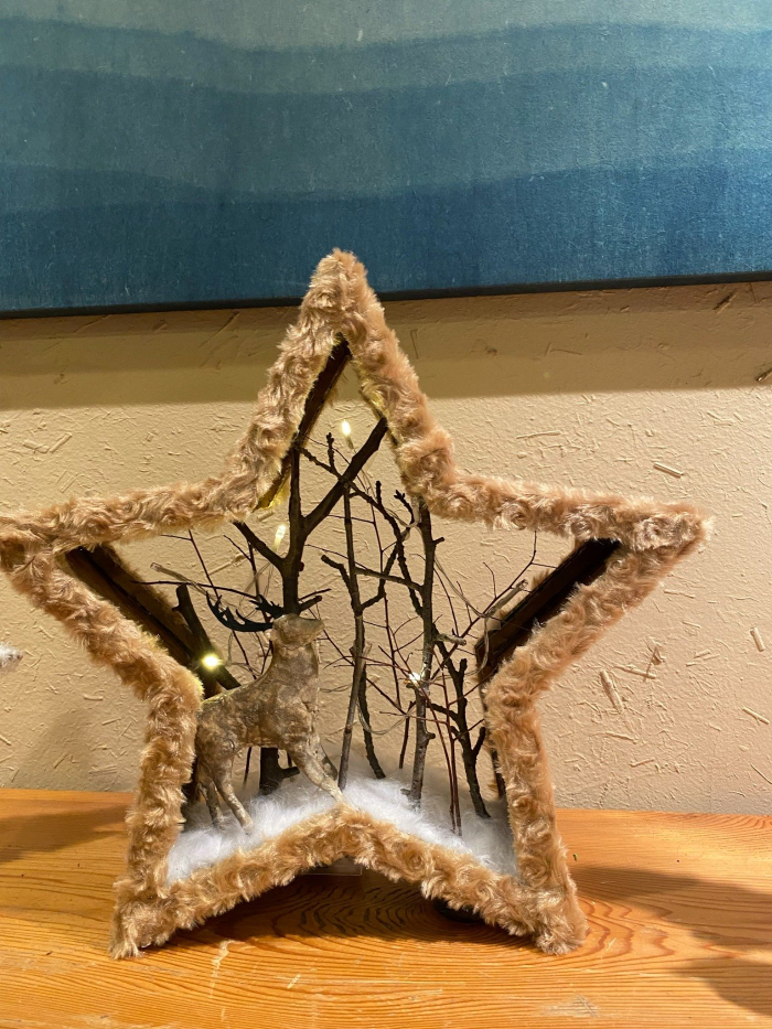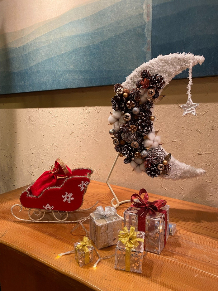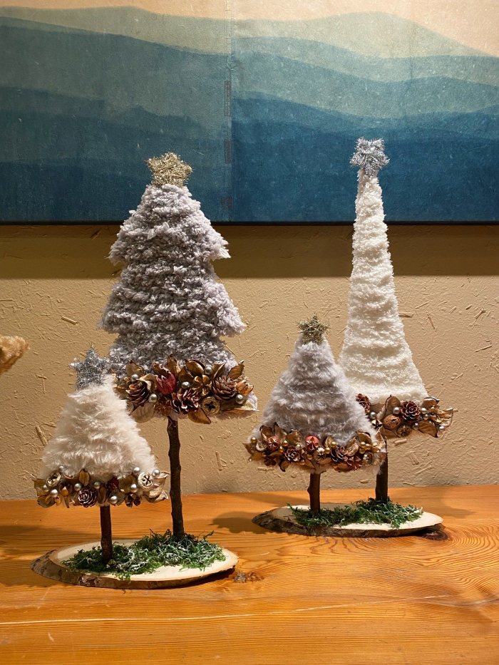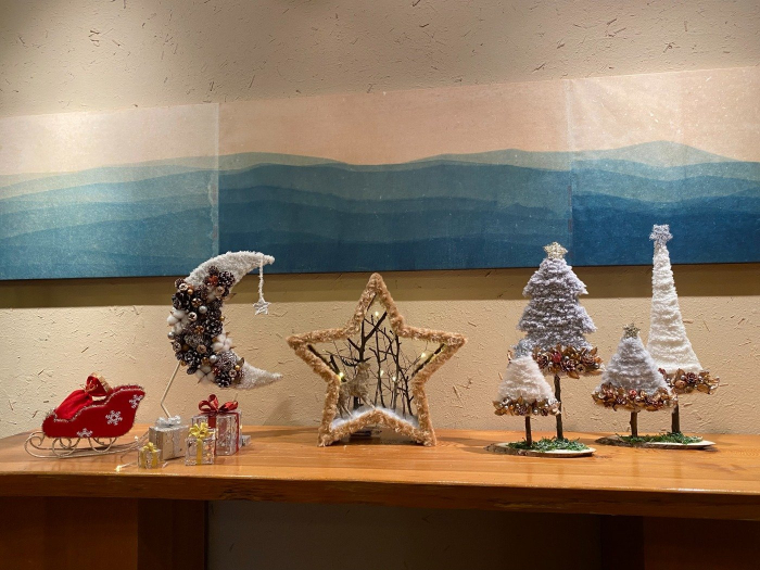 玉藻荘 2021.11.25 玉藻荘アート クリスマス ジャジャジャジャーン☆彡 職員手作りの冬の新作!!クリスマスバージョンが出来上がりました。 針金や段ボール、木の枝を巧みに使った素敵なアートです。 玄関に飾っており、通る人の目と心を奪っています。 毛糸のもこもこ感がとってもあったかい気持ちになりますね。