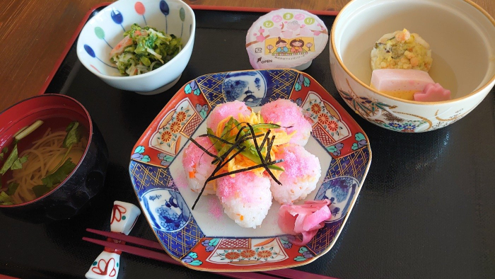 玉藻荘 2022.03.03 ひなまつり御膳 ひなまつり!! 今年もお花に見立てたお寿司・彩りのある煮物・菜の花等を使って、春らしく可愛いお食事にしてみました。 少し暖かくなっていますが、早く春が来るといいな~。