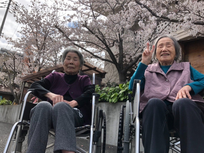 玉藻荘 2022.04.04 玉藻荘周辺でのお花見 玉藻荘周辺の桜がほぼ満開になりました。 今日はちょっと寒かったけど、久しぶりに外に出れて、 きれいな桜を観賞できて、みんな笑顔(^^)/ 寒さもふっとびました。
