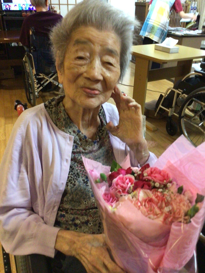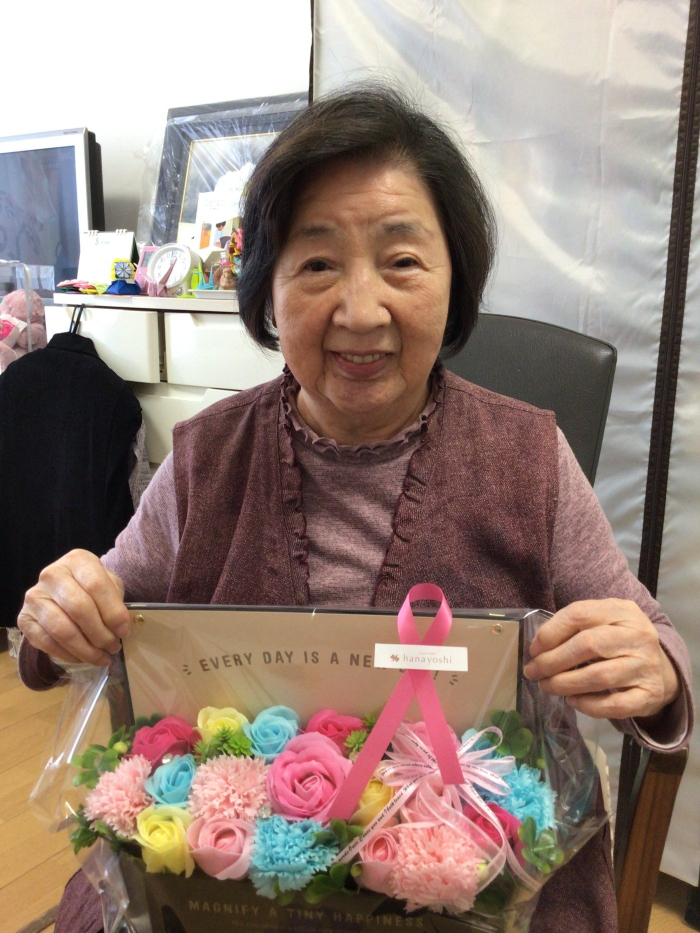 玉藻荘 2022.05.09 母の日 昨日は、母の日でした。玉藻荘にも、たくさんのお花や贈り物が届きました。ご家族に代わって、感謝の思いを伝えながら、一つ一つ丁寧に贈らせていただきました。「嬉しい」「綺麗ね」と皆さん、大変喜ばれ、心温まる暖かい一日となりました。
