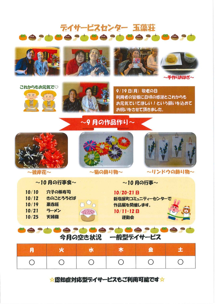 玉藻荘デイサービスで一緒に秋を楽しみませんか?