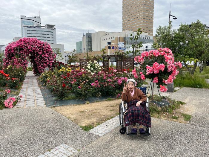 玉藻荘 2023.06.01 空と海と花と船 日が照ると汗ばむほどの快晴 どこかへでかけたいなぁ。という皆さんの要望にお応えし 超近場、お馴染みのサンポートへ 咲き誇るバラ・・・のはずが、散りかけてる!? でもここは、女性陣の美しさで十分カバー( ´艸`) 晴れ渡る空 青い海 タイミングよく、港には停泊している海上自衛隊の輸送船が。 これはラッキー♡その迫力に圧倒され、男性陣は大興奮!! 制服の帽子をお借りして記念撮影。 笑顔溢れる、外出の一コマでした。