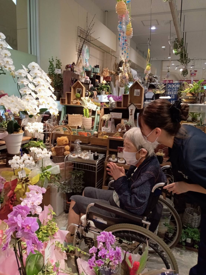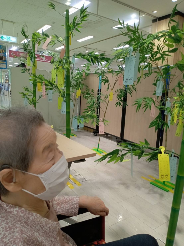 玉藻荘 2023.06.30 イオンへお出かけ 今日はみんなで高松東イオンへお出かけしてきました。 着いたらフードコートでアイスやおはぎを食べてちょっと休憩(#^.^#) もう季節は七夕シーズン。みなさん短冊に願いをこめてらっしゃいました。 それからお花屋さんやケーキ屋さん、化粧品を見ながらウィンドウショッピングを楽しまれました。 最近のは良いものがそろってますね。また新商品をチェックしにきましょ~( *´艸`)