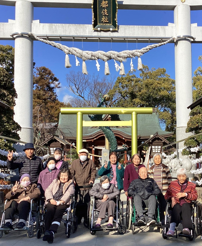 玉藻荘 2025.01.29 デイ みんなで田村神社へ 1月20日、デイのご利用者の皆さんで初詣に行ってきました。 この日は大寒でしたが天気は快晴! 気温も暖かくお出かけ日和でした。 田村神社に行くのが初めての方も多く、お参りをしながら「すごいね」「立派やなぁ」と楽しそうに話をされていました。 帰りにはみんなで生姜湯を飲んで体もぽかぽか♪ 今年も元気で楽しい一年になりますように。