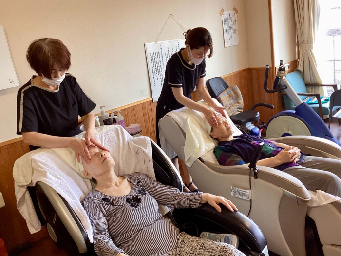 ハンドマッサージは楽しくお話をされながらゆっくりと、フェイスマッサージはマッサージチェアに座っての本格的な施術でした!