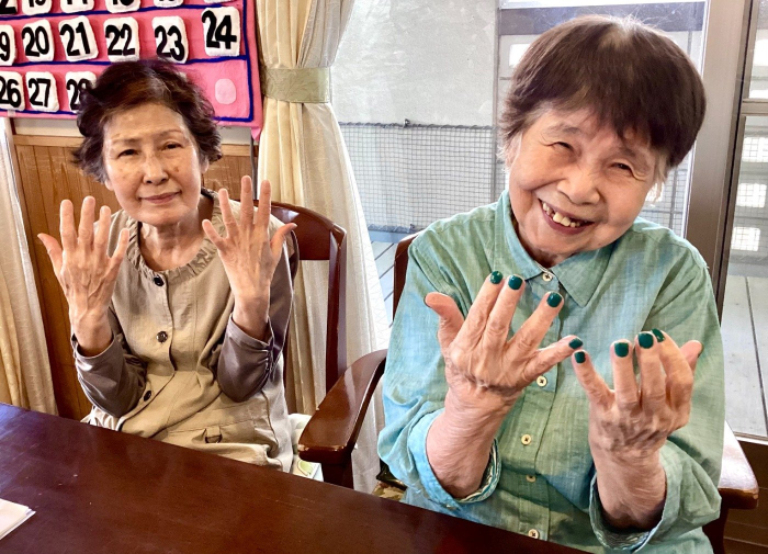 「その色きれいやね」「よう似合うとるで」「爪が光っとるわ」