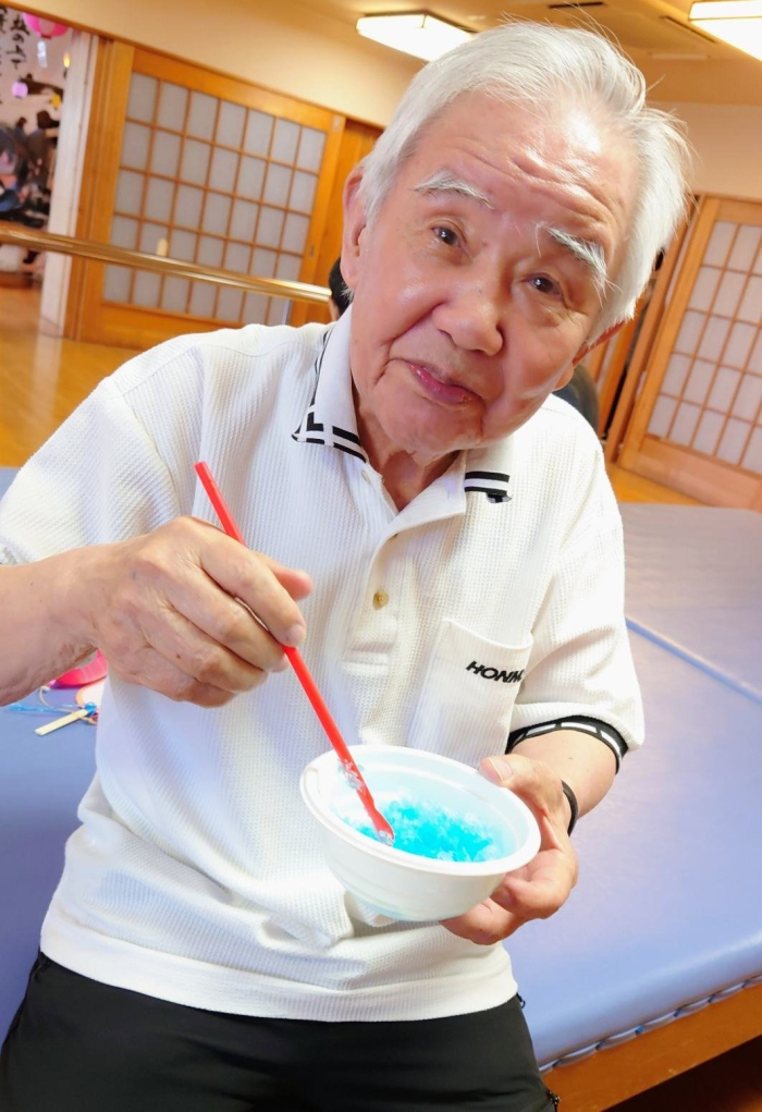 そんなお祭りのゲームを楽しんだ後はかき氷を食べながらちょっと一息♪