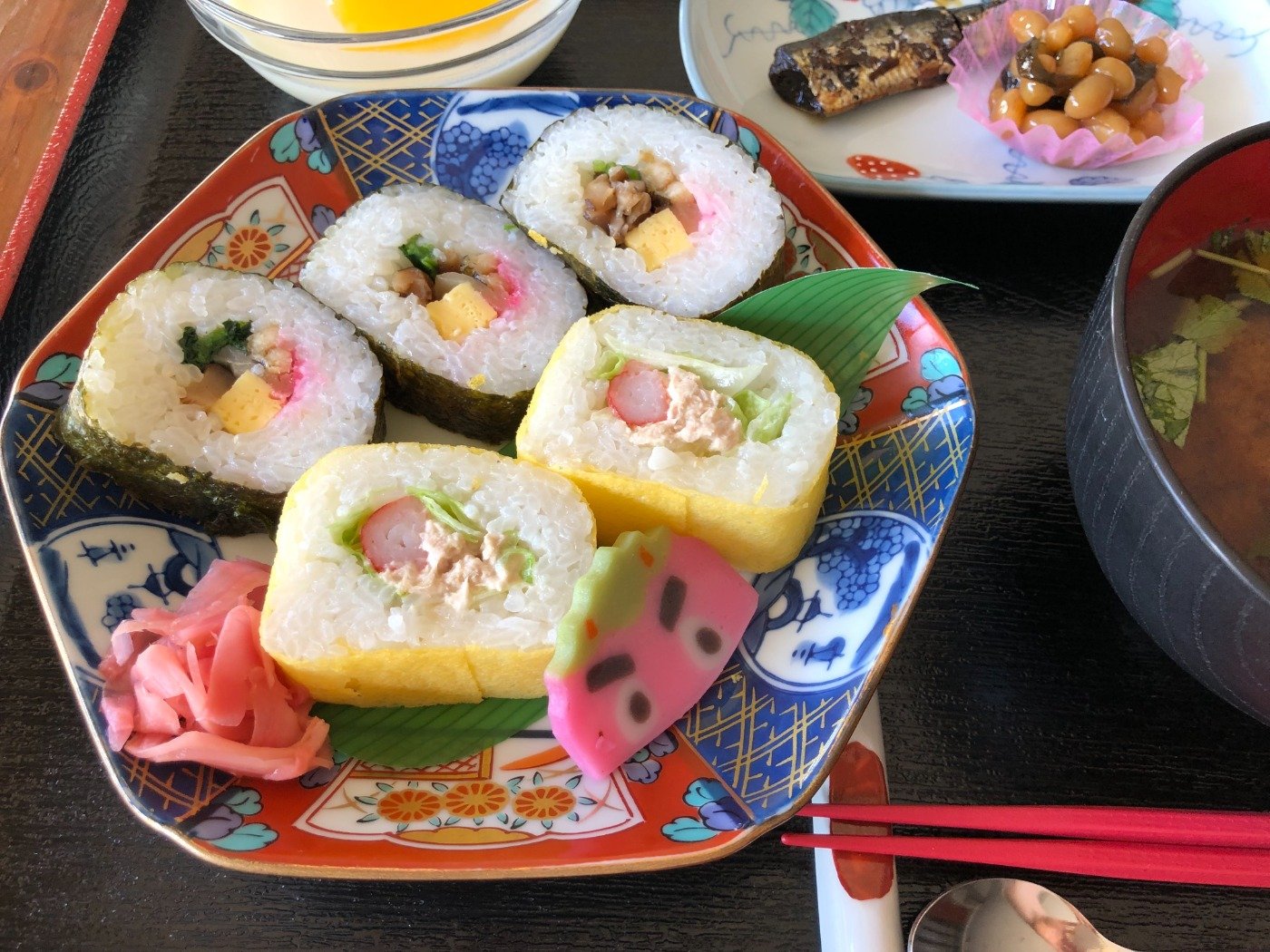 玉藻荘 2026.02.03 節分 本日は節分です。昼食には巻き寿司とサラダ巻きをご用意しました。 海苔を噛み切れない方には、きざみのりをまぶして食べやすいよう工夫しています。 お代わりも少しですがご用意できたので、皆様大変喜んでくださいました。 お食事の後は豆まきが始まるようです。